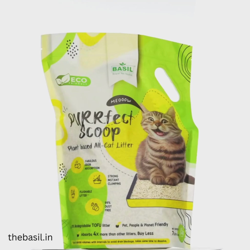 BASIL PURRfect Scoop Cat Litter, Eco-Friendly & Biodegradable TOFU Cat Litter, 7 Ltr