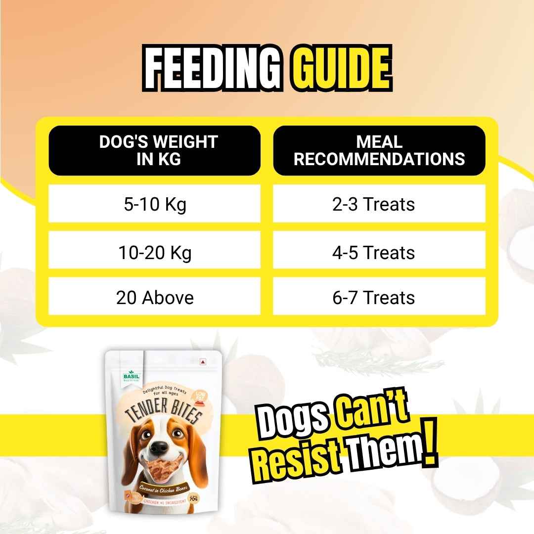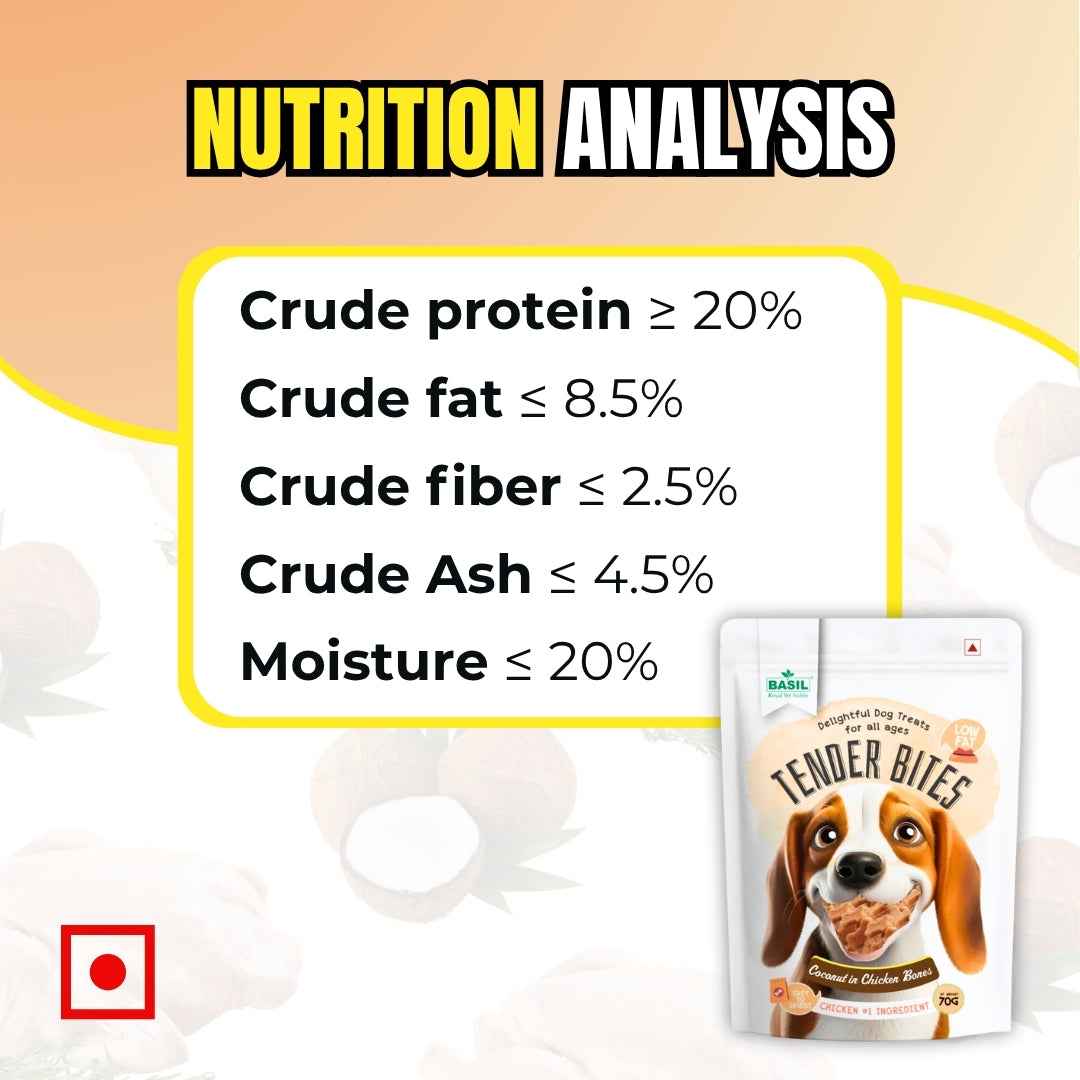 BASIL TENDER BITES Coconut in Chicken Bones – Premium Dog Treat | 70g Pack | High Protein, Calcium-Rich, Gluten-Free Chew Snack for All Breeds